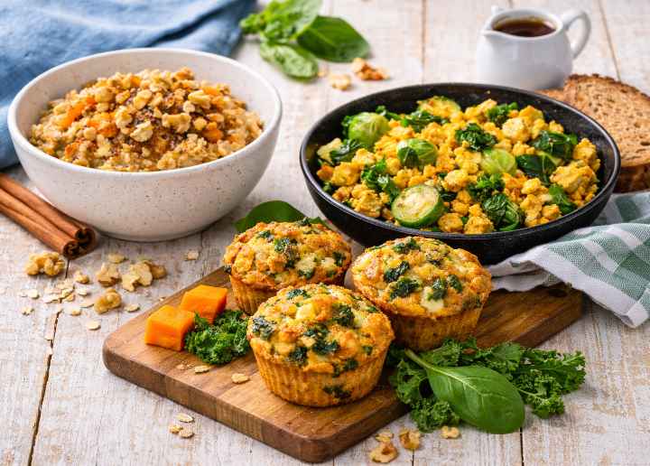 Met deze drie recepten laat diëtist Renée Olders zien hoe je op een smakelijke manier meer plantaardige en vezelrijke producten kunt toevoegen aan je voeding. Van een warm ontbijt met geroosterde wortel-havermout tot een winterse tofu scramble en hartige boerenkool-pompoen muffins: elk gerecht heeft een eigen karakter, maar ze hebben één ding gemeen – ze zijn voedzaam, verrassend en goed voorbereidbaar.